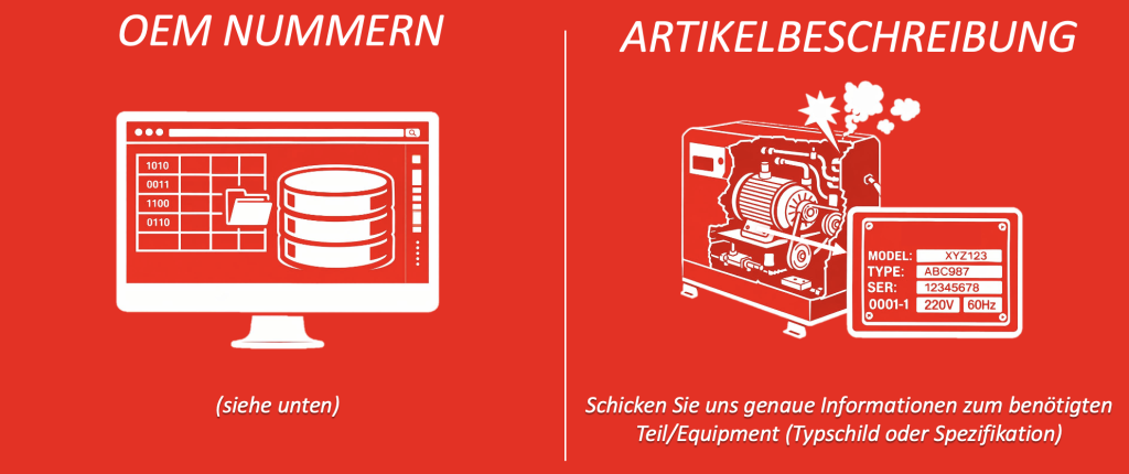 Schicken Sie uns eine detaillierte Beschreibung des benötigten Equipments oder der Ersatzteile – wir finden für Sie das Passende. Weiterhin können Sie bei uns OEM-Nummern führender Hersteller wie Krones, Kettner, KHS, H+K, SEN oder O+H anfragen (siehe Datenbank unten).